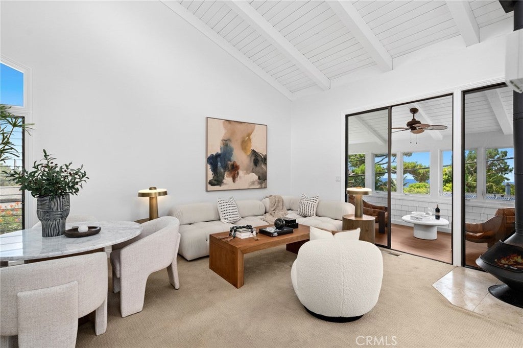 Iconic coastal living comes to life in this classic South Laguna cottage, set moments from the vibrant South Laguna Village and the pristine sands of Table Rock Beach. Thoughtfully positioned on an elevated corner lot, the home captures sweeping ocean views from both levels and features a generous front deck designed for effortless outdoor living. Inside, the airy open-concept design spans approximately 1,089 square feet, complemented by an additional 123-square-foot enclosed patio. Vaulted ceilings enhance the sense of space, while the main level showcases an open kitchen with bar seating—perfect for casual dining and entertaining. Two bedrooms and two bathrooms are thoughtfully arranged, including a spacious primary suite on the main level. Outdoors, the property is framed by colorful landscaping and offers parking for two in the garage, plus additional driveway parking. Enjoy proximity to world-class resorts such as the Montage, picturesque coves, sandy beaches, and Laguna’s renowned collection of galleries, boutiques, and dining destinations. An exceptional opportunity—perfect as a main residence or a second home.