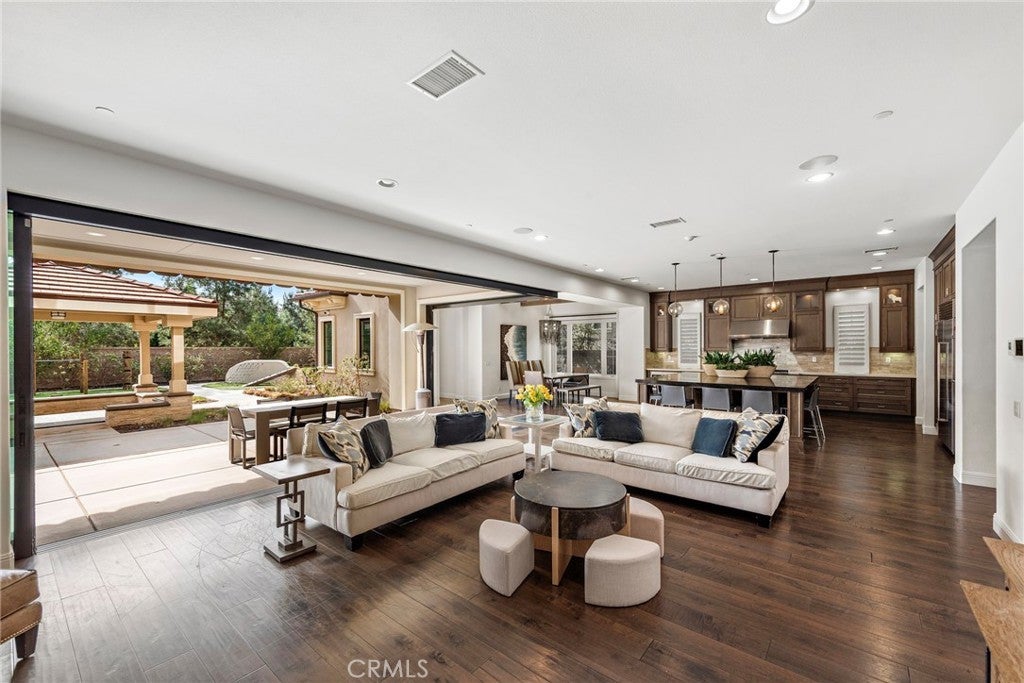 Luxury furnished rental property in the gated community of Hidden Canyon with an entertainer's backyard. Upon entering the home you are greeted by a foyer and formal dining room which could be used as an office or music room, a powder room, guest room with en-suite bathroom, and a large open concept living room which opens to the kitchen and additional dining area. The kitchen features a large island, double convection ovens, sub zero fridge, 6 burners plus griddle, pot filler, microwave, wine fridge and a butler's kitchen with built-in coffee machine and lots of storage. This home is exceptional for indoor/outdoor living with pocket doors that span the entire length of the living room and kitchen, creating an incredible entertaining opportunity. The outdoors has a covered BBQ and eating area, followed by a covered fireplace and built-in seating area, finished with multiple play areas for children including soft grounds below the bars. Up the grand staircase you are greeted by a large loft, a master suite with office area, private balcony, 3 walk-in closets, soaking tub, double shower and sinks, and 3 additional bedrooms each with their own bathroom. This home has solar, wired for electric car charger, built-in speakers, Control 4, hot water sensors in bathrooms and kitchen. The community is 24 hour guard gated with pool and hot tub and playground area, and conveniently located to the freeways, close to Irvine Spectrum Center, Quail Hill Shopping Center, South Coast Plaza, and short driving distance to Laguna Beach and Newport Beach.