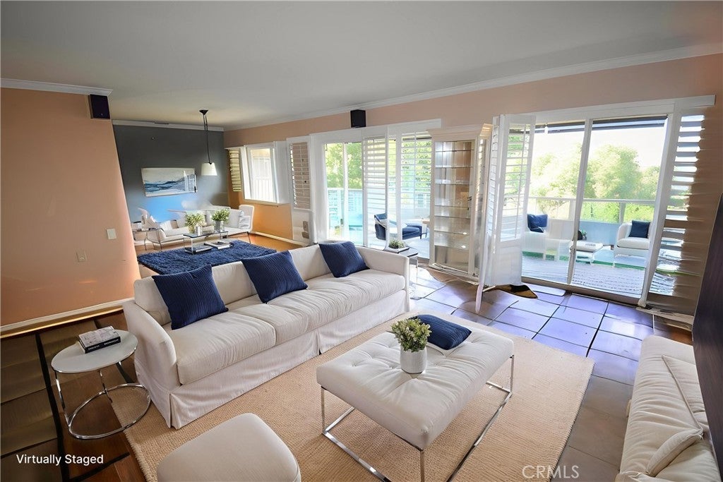 Don't miss the opportunity to own this beautifully upgraded 2-bedroom, 2-bathroom La Brisa model, upper unit, in a prime location - just steps away from Clubhouse #6 (complete with one of the community's five pools). PLEASE NOTE: Unit number is "O", not "20"! This home is packed with premium features! The open floor plan is complemented by designer tile, smooth ceilings, crown molding, plantation shutters, and double-paned windows throughout. The remodeled kitchen is a chef's delight with solar tubing for natural light, recessed lighting, Corian countertops, stainless steel appliances, and convenient roll-out pantry shelves. It also comes fully equipped with a full-size washer/dryer and central air and heat for year-round comfort. The guest bedroom offers abundant closet space, including a custom organizer, and is illuminated by a skylight. The updated guest bath features a granite vanity, a combination tub and shower, and an additional skylight. The spacious master bedroom boasts a ceiling fan, crown molding, and a private dressing area, with a generously sized closet featuring mirrored doors and custom organizers. The master bath includes a granite top vanity and a large, custom-built shower with built-in seating. Step outside to the covered balcony and enjoy peaceful views of the surrounding hills and trees— perfect for relaxing after a long day. Plus, extra storage on the balcony provides added convenience. The assigned carport (Space 4, Carport 5016) is located nearby and includes additional enclosed storage. This home is located within the vibrant, 55+ community of Laguna Woods Village, which offers an incredible array of amenities, including: championship golf on 2 courses, 5 swimming pools, tennis, pickleball, crafts & hobby workshop, 3 Fitness Centers, over 200 social clubs to join, billiard room, bridge room, library, horseback riding, garden center, basketball, card rooms, bocce ball, and more! The HOA covers cable TV, trash, water, building maintenance and insurance, landscaping, guarded gates, and security patrol for peace of mind. Don't miss out on this opportunity to live in a wonderful community with resort-style amenities and a home that has it all. Schedule a tour today!