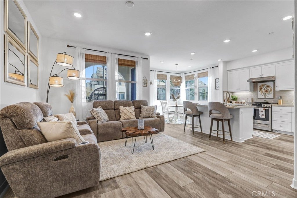 new fully furnished 2 bedroom, 2 bath condominium, corner unit, with a flex work space, stainless steel smart appliance, quartz countertops, custom window shades, new furniture throughout the home, Smart TV located in every room, 1 attached car garage with direct access to the living room, furnished patio, solar powered, custom window shades, in a beautiful resort style community. Plenty of street parking. Available Now.