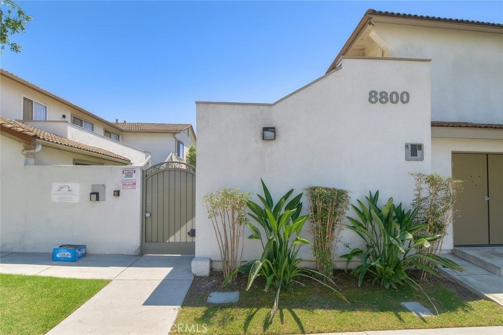 Beautifully Remodeled Ground-Level Condo in Gated Community! Welcome to this clean, gorgeous, and move-in ready ground-level entry condo featuring a detached 2-car garage and modern upgrades throughout. Recently remodeled by the owner, this home boasts a brand-new kitchen, updated bathroom, and laminate flooring throughout. Enjoy the convenience of in-unit washer and dryer hookups and a functional, stylish layout. Located in a safe, well-maintained gated community with amenities including a sparkling pool, relaxing spa, covered patio area for BBQs and picnics, and ample guest parking right out front. Perfectly situated near top local attractions and dining, just minutes from Rodeo 39 Public Market, Knott’s Berry Farm, and Soak City Water Park — this location offers both comfort and convenience!
