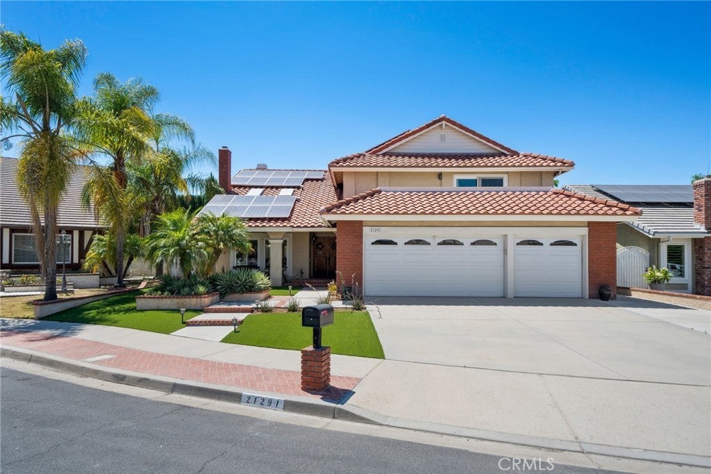 Nestled in a highly desirable neighborhood, this home combines comfort, functionality, and long-term value. This exceptional home offers over 1,000 sq ft of permitted expansion and updated bathrooms, providing incredible potential for customization and additional living space. Step inside to discover a bright and inviting living room with soaring vaulted ceilings and dual skylights, filling the space with abundant natural light. The downstairs bedroom with a full bath is ideal for guests, in-laws, or multi-generational living. The home features three cozy fireplaces, including one in the spacious upstairs bonus room, which is perfect for a home office, den, or media lounge. The oversized primary suite is a true retreat, featuring both a walk-in closet along with direct access to a spacious private balcony—perfect for relaxing outdoors. Additional highlights include solar panels, promoting energy efficiency and lower utility costs, and access to two sparkling community pools located within the tract—ideal for staying cool and active year-round. Don’t miss this incredible opportunity