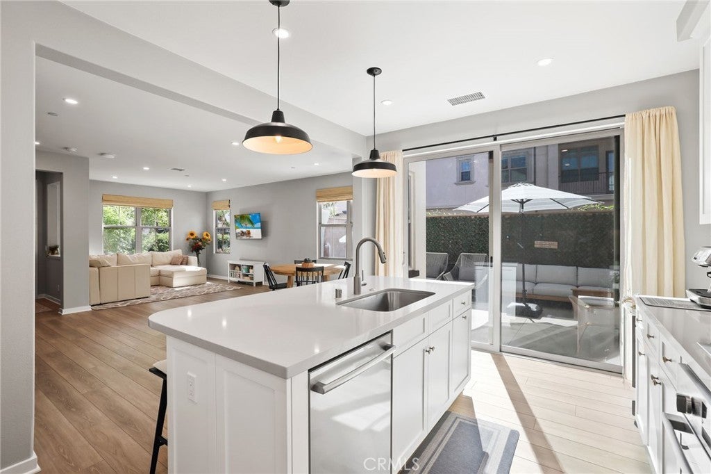 Beautifully upgraded EXTERIOR END-UNIT home Portola Springs. Built in 2022, this modern residence offers 3 bedrooms, each with their own ensuite bathroom, loft bonus room for added flex space plus additional powder room downstairs. Spacious home with over 2100 sq. ft. Open concept design, upgraded flooring down stairs, fills this home with an abundance of natural light. Gourmet kitchen with Bosch stainless steel appliances, including 5 burner cook-top, gorgeous quartz countertop and upgraded designer full backsplash. View private park-like patio through expansive sliding glass doors for seamless living and entertaining that inspires gatherings and outdoor relaxation. Upstairs primary suite offers a large walk in closet, freestanding soaking tub, dual vanities, and glass enclosed shower. Dedicated laundry room with extra storage space is located conveniently upstairs. Some added features throughout; motorized remote blinds, luxury laminate wood, designer selected plush carpet, car charger, epoxy garage floors and eco-friendly FULLY PAID OFF solar panels just to name a few. This is a home that offers a lifetime of comfort and enjoyment for both daily living and for home ownership. As part of Portola Springs, residents enjoy resort-style amenities including pools, parks, playgrounds, basketball and tennis courts, scenic walking trails, and more. The community is also served by The Irvine Unified School District (IUSD) which has received multiple awards, and within the Portola Hills area, Portola High School and Portola Springs Elementary have been specifically recognized. Portola High received the Engineering News-Record's "Best of the Best K-12 Education Award" for design and construction, and the 2025 California Green Ribbon School sustainability honor. Portola Springs Elementary was named a 2025 California Distinguished School. award-winning Irvine schools. Easy access to shopping, dining, and major freeways. Whether enjoying the beach or the mountains, this home is located centrally to enhance your lifestyle. Shop, play, and dine all a short distance away with The Great Park, Laguna Beach, Irvine Spectrum, and more!