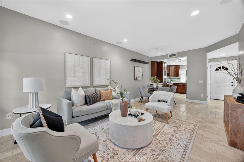 Charming, Fully Upgraded One-Bedroom Retreat in Desirable TRS Creek Villas. Welcome to this extremely charming and beautifully upgraded one-bedroom, one-bathroom home that blends elegance, comfort, and functionality. From the moment you step inside, you’ll notice the attention to detail and high-quality finishes throughout. The stunning chef’s kitchen is a showpiece, featuring quartz countertops, stainless steel appliances, double ovens, and a convenient pot filler over the stove—perfect for both everyday cooking and entertaining. Adjacent, the custom tech office center adds a touch of modern practicality, ideal for today’s work-from-home lifestyle. The living spaces boast Versailles-pattern tumble marble flooring, new dual-pane windows and doors, and upgraded ceiling fans for comfort. The spa-like bathroom features a frameless marble step-in shower with upgraded tile work, providing a luxurious retreat. Additional highlights include: Custom sliding mirrored closet doors, spacious walk-in laundry room with cabinetry, countertop, and room for a full-size stackable washer/dryer, tankless water heater, epoxy-coated garage floor for a polished finish, ground-level entry with absolutely no steps for easy accessibility. Located in the highly sought-after Tijeras Creek Villas community, this home offers not just comfort, but lifestyle. Step outside to enjoy greenbelt views, picnic tables, BBQ areas, and a tranquil pool and spa just moments away. This is truly a rare opportunity to own an impeccably maintained and thoughtfully upgraded home in one of the area’s most desirable neighborhoods. Don’t miss your chance to experience it in person—schedule a private showing today!