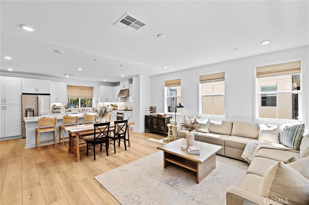 Welcome home to 25 Gander Court, a thoughtfully upgraded home in the village of Rienda, part of the top-rated master-planned community of Rancho Mission Viejo. Step through a private gated entrance into a charming front patio, the perfect introduction to this inviting home. Upon entering you’re greeted with a versatile first-floor office, complete with a custom white oak barn door, also providing the option for a fourth bedroom. Heading to the 2nd level you’ll find the chef’s kitchen boasting with Café appliances, white quartz countertops, a designer inspired backsplash, framed windows, and soft-close cabinetry. Woven bamboo cordless shades and extra-wide 9” luxury vinyl plank flooring flow throughout the home, adding warmth and style. All three spacious bedrooms are conveniently located on the same floor, including the primary suite with its spa-inspired bathroom featuring quartz marble flooring, an upgraded shower, and soft-close cabinetry. Additional upgrades include plush carpet with premium padding and paid solar. The garage is finished with epoxy flooring, a roof storage rack, and an extra-wide side space. Best of all, the private rooftop deck offers panoramic mountain views from sunrise to sunset—perfect for relaxing mornings or evening gatherings. With modern upgrades and access to award-winning community amenities, 25 Gander Court is a home you won’t want to miss. Experience resort-style living at its finest. As part of the Rancho Mission Viejo community, you'll enjoy access to an array of resort-like amenities. From sprawling pools and fitness centers to hiking trails, sports parks, arcade, coffee shop, community events, and so much more, there's always something to explore and enjoy.
