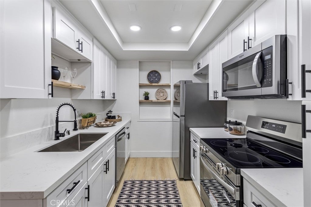 Discover coastal living at its finest in this stunning, fully renovated 650 sq. ft. 1-bedroom, 1-bath upstairs condo, just roughly a quarter mile from world famous Doheny State Beach! Embrace the coastal beach lifestyle with surfing, biking, and jogging trails right near your doorstep. This natural light-filled gem boasts vaulted ceilings, fresh paint, and new flooring throughout, creating a bright and airy ambiance. The brand-new kitchen dazzles with quartz countertops, under-mount sink, a modern range oven, microwave, and new dishwasher. Enjoy ocean breezes and views through bedroom window and a living room sliding glass door. Ideally located near vibrant shopping and restaurants, this quiet condo offers the ultimate blend of luxury and convenience. With the Dana Point Harbor revitalization project underway this makes for a great investment property to add to or start building your real estate portfolio, or just an amazing place to call home in this extremely special beach town. Live the southern Californian beach life dream in your move-in-ready Dana Point retreat!