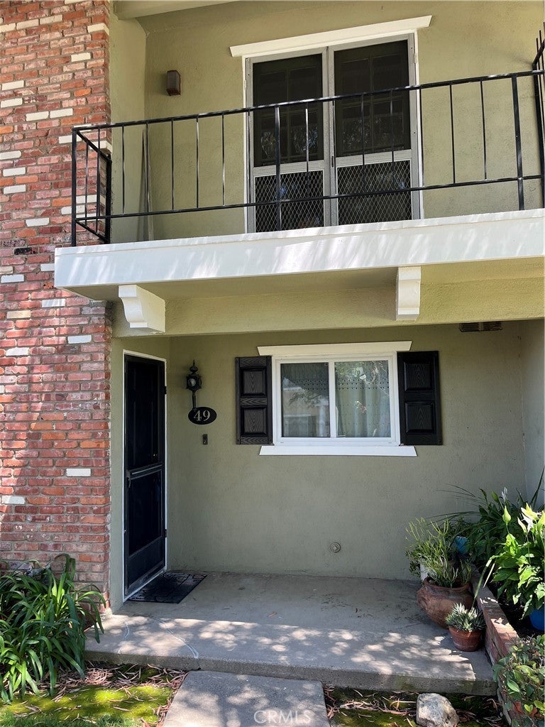 Extra privacy, great end location, attached neighbor on only one side. View from primary bedroom balcony of grass courtyard (with fountain) and beautiful shade tree. Large patio connects directly to double car enclosed garage. Upgraded then well cared for home: windows, sliding door, downstairs flooring. Kitchen upgrades include the cabinets, appliances, countertops. Both bathrooms updated. New flooring upstairs, freshly painted throughout. Very clean turnkey home in desirable Rossmoor neighborhood. Highly sought after Los Alamitos School District.