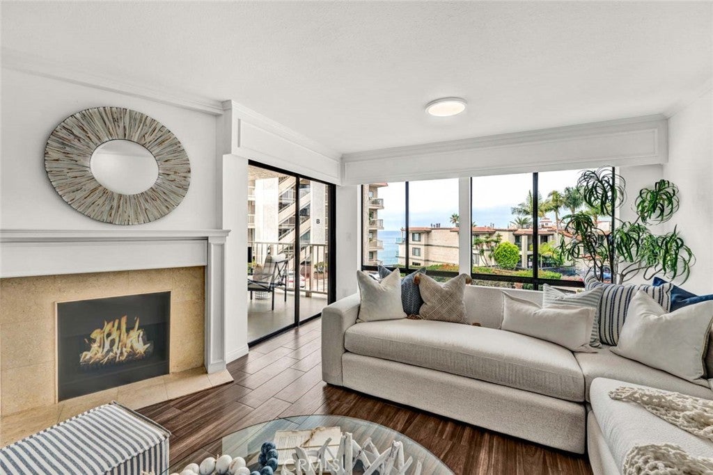 A PRICE IMPROVEMENT too as you step into your COASTAL DREAM HOME you’ve always imagined—where the sound of waves sets the rhythm of your days and the scent of salt air wafts through your windows. Just minutes from the sand, this beautifully updated single-level, first-floor END UNIT in the highly sought-after, Reef Gate West community invites you to embrace RESORT-STYLE living in the heart of San Clemente’s beloved PIER BOWL. The fresh paint, professionally staged interiors, and newly carpeted bedrooms create a crisp, welcoming atmosphere. The light pours into the OPEN-CONCEPT living spaces, where a cozy fireplace anchors the room and the ocean view frames your daily backdrop. Step onto your private covered balcony to watch the breakwater shimmer at sunset, feel the sea breeze on your face, nice. The home’s thoughtful upgrades shine—two of the three bathrooms have been completely remodeled with custom tile & fixtures, creating spa-like retreats. Both bedrooms are designed for comfort, while the primary suite offers a serene escape at the end of the day. Practical touches like an in-unit washer and dryer make it easy, while crown molding, Tile (but natural wood looking) flooring, and a nice kitchen that opens to the family room make it company and entertaining friendly for sure. The GATED and SECURE Reef Gate West offers every amenity to enhance your coastal lifestyle: two sundecks, a year-round heated pool and spa, fitness center, Sauna, game room, Meeting or Party Room with a full kitchen, plus you will enjoy a PRIVATE gated access to the beach, and on your way down, you will notice a huge dedicated storage area for surfboards and beach gear. You also get a gated secure garage parking area with two spaces and guest parking add peace of mind. From your home, stroll to the surf and sand in moments, or wander up to the vibrant shops and world-class restaurants of AVENIDA DEL MAR and downtown San Clemente. Whether it’s morning walks on the SAN CLEMENTE PIER, afternoons spent watching whitewater roll in, or evenings gathering with friends on the expansive patio right in front of your unit, overlooking RENOWNED Casa Romantica, this home is more than a residence—it’s a lifestyle. Own a rare piece of paradise where modern comfort meets timeless coastal beauty. Short term rentals are ok (30 days or more) So this is a good investment as well. HOA includes ALL utilities except Electric!