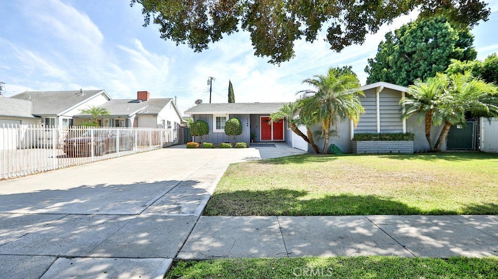 Beautifully maintained since 1989, this Mid-Century Modern home is truly a gem. The original hardwood floors have just been refinished in a natural tone, highlighting its timeless charm. Fresh designer interior paint and smooth ceilings create a bright, updated feel throughout. Both bathrooms have been tastefully remodeled: the hall bath includes a tub with a new glass enclosure, while the ¾ bath—conveniently located between the laundry room and an additional bedroom—also features a glass-enclosed shower. The split floor plan provides privacy with two bedrooms and a hall bath on one side, and a third bedroom with its own ¾ bath on the other. This home also offers modern upgrades including newer dual-pane windows, a 5-year-old roof, 3 year-old tankless water heater, 3 year-old central air, 3 year-old upgraded insulation, and fresh paint. The spacious private backyard includes two orange trees, mature landscaping, and greens. Washer, dryer, and refrigerator will be gifted by the seller, making this home move-in ready and waiting for you. OFFER NOW BEFORE IT'S GONE!