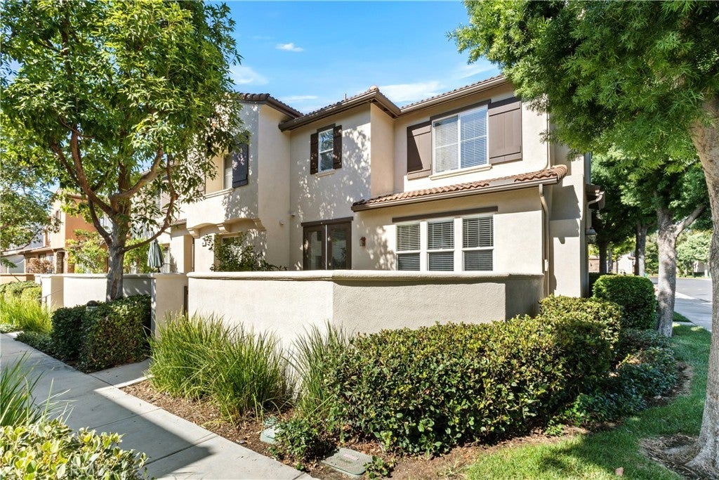 This beautifully maintained end-unit residence perfectly combines modern elegance, comfort, and an ideal location. From the moment you enter, you’re welcomed into a spacious open floor plan with a light-filled living and dining area. Tile flooring, recessed lighting, a ceiling fan, fireplace, and built-in entertainment center create a warm yet sophisticated setting. French doors open to the private patio, thoughtfully designed with built-in planters—an inviting retreat for entertaining or enjoying a quiet afternoon outdoors. The kitchen has a quartz countertop with white cabinetry, stainless steel appliances, gas cooking, and a walk-in pantry, offering both style and convenience for everyday living. Upstairs, a versatile loft with built-in desk provides the perfect space for a home office or study. The primary suite is a private retreat featuring recessed lighting, a ceiling fan, dual vanities, a separate soaking tub, a walk-in shower, and a spacious walk-in closet. Two additional bedrooms share a full hallway bathroom, with one room enhanced by a charming bay window and seating area. Additional highlights include laminate wood flooring throughout the upstairs, fresh interior paint, recessed lighting throughout, a direct-access two-car garage, and all appliances including a refrigerator, washer, and dryer. Ideally located within the award-winning Beckman High School district and within walking distance of Myford Elementary, this home also offers easy access to West Irvine’s scenic trails and parks. Blending style, comfort, and prime positioning, this residence is truly move-in ready.