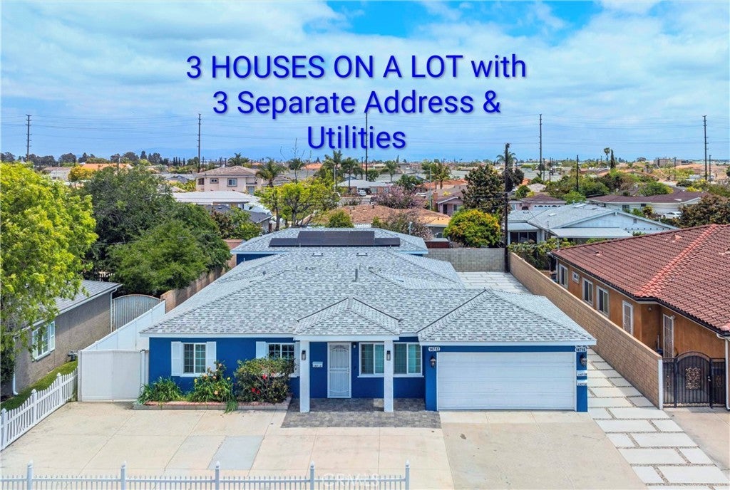 Investors Alert! Three Homes with 3 Separate Address and Separate Utilities meters together approximately 2814 SQFT on One Lot in Prime Midway City Location! Situated within walking distance to the vibrant Bolsa and Phuoc Loc Tho districts, as well as Mile Square Park, schools, shopping, offices, supermarkets, and with easy freeway access, this property is a renter's dream. The newly remodeled main house boasts approximately 1518 SQFT of comfortable living space with 4 bedrooms and 3 bathrooms. Enjoy the convenience of central air conditioning and an attached 2-car garage. The detached, brand-new ADU offers approximately 800 SQFT with 3 bedrooms and 2 bathrooms. This modern unit features new porcelain large custom tiles throughout, stylish new blue shaker cabinets and kitchen quartz countertops with a modern sink and fixtures, and brand-new stainless steel appliances. The bathrooms are beautifully appointed with new vanity, a walk-in shower featuring custom tiles, a sleek shower glass door, and stylish fixtures. Benefit from energy savings with the Solar system and individual mini-split air conditioning. The charming JADU provides approximately 496 SQFT with 1 bedroom and 1 bathroom, plus its own well-equipped kitchen. The kitchen features trendy blue shaker cabinets on the bottom and white shaker cabinets on top, kitchen quartz countertops and complemented by new stylish fixtures and new stainless steel appliances. Enjoy the bright and airy feel with recessed lighting throughout and the comfort of its own mini-split air conditioning. This property offers ample parking space for all units. The unbeatable location provides walking access to a wealth of amenities, ensuring high tenant demand. Don't miss this exceptional opportunity to invest in a prime rental market with around $11,000 income!