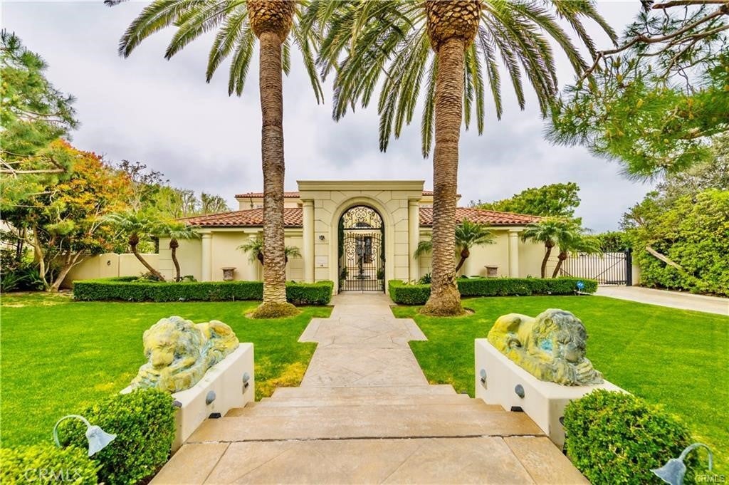 This exquisite, fully furnished estate is situated in the exclusive gated community of Pelican Hill on Newport Coast, offering utmost privacy and ample space from nearby homes. The residence has recently undergone a renovation, enhancing its grandeur with a full security system, a residential elevator, and pet-friendly accommodations that combine luxury with practicality and security. The property serves as a tranquil haven. Entry through private gates and a lovely courtyard leads to an impressive two-story foyer adorned with a sweeping staircase. This sprawling 8,000+ square-foot home features five lavish bedroom suites and 5.5 bathrooms.